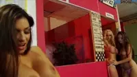 The video begins with the sight of two stunning beauties, a blonde and brunette, walking into the room wearing fishnets and lingerie that barely cover their delightful curves.These sexstarved hussies have been waiting for this moment, and as they lock eyes, the passion ignites within them.The blonde, with her slutty, busty physique and perfect boobs, is eager to please the brunette, sweetheart.As they move closer together in an intimate embrace, their hands explore every inch of each others bodies, caressing their nipples through their lace undergarments as they sigh with anticipation for what comes next.The blonde slips a hand beneath the brunettes skirt, touching her soft thighs and then sliding her fingers into the sweet, wet crevice of the brunettes ass, causing her to arch her back and moan with pleasure.Their mouths lock in an intense kiss, tongues delving deep as their passionate embrace grows more fervent.Their hands roam freely over each others bodies, their fingers slipping between delicate lips, sending shivers of delight down their spines.As the passion escalates, the brunette pulls away from their kiss, taking a step back and smiling with pure lust in her eyes.The two sexcrazed women gaze at each other longingly before moving towards one another once more.The blonde gets onto all fours, presenting herself to the insatiable brunette, who wastes no time in fingering the wet lips of her lovers cunt with a fervent touch.The blondes sweetheart responds by licking and sucking the clit, causing her lover to writhe in ecstasy and moan uncontrollably.As the sexual tension mounts, the brunette moves in behind the blonde, spreading her ass cheeks apart and positioning herself at the entrance of her lovers sweet cunt.Their bodies press against each other with a fervent desperation as she teases the opening before finally penetrating it with a deep thrust that sends both women into uncontrollable spasms of pleasure.The brunette pumps her hips, driving herself deeper and harder into the blondes wet, eager cunt.Her hands roam over the blondes busty chest, squeezing and caressing until it feels like a perfect storm of pleasure is unleashed upon their senses.The room fills with the sound of moans and grunts as they climax together in a chorus of erotic satisfaction, their bodies entwined in passion for the ages.